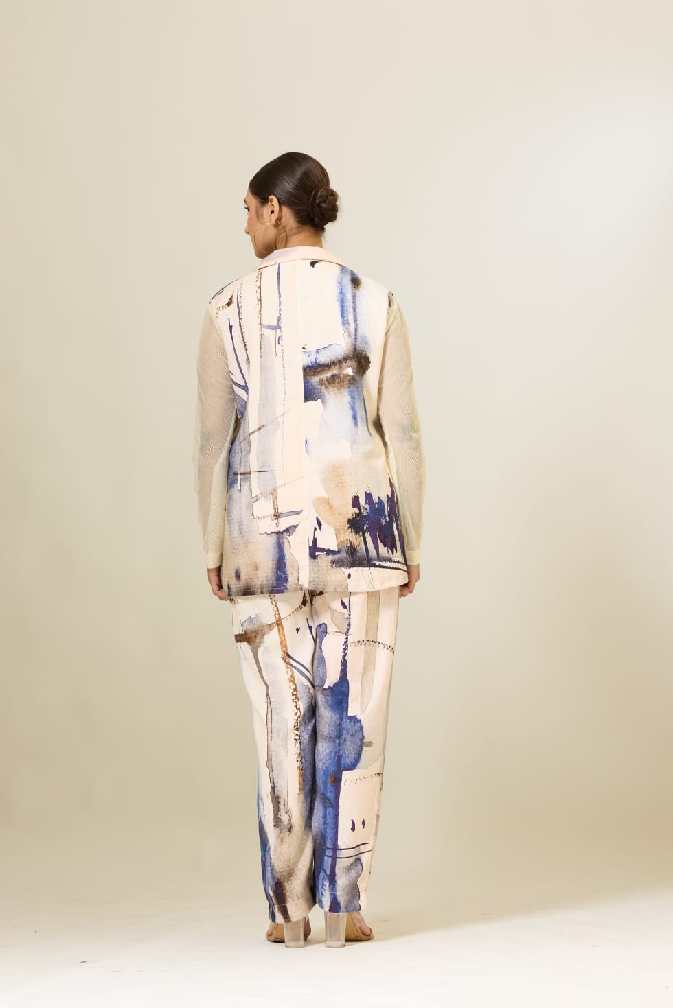 Printed Sleeveless Jacket with Pants, highlighted with Thread Work